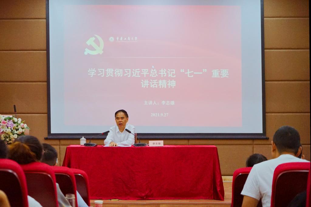 9月27日上午,校党委书记李志雄在江北校区图书馆学术报告厅为阆中培训班全体学员、继续教育学院和通识学院(江北校区管委会)全体教职工作学习贯彻习近平总书记“七一”重要讲话精神专题辅导报告。李志雄代表学校对阆中培训班到会学员表示热烈欢迎。他指出,作为阆中培训班的一员,要更加深入地学习、领会、研究习近平总书记“七一”重要讲话精神的深刻内涵,将其当成今后学习工作和生活的蓝本及行动纲领。习近平总书记“七一”...