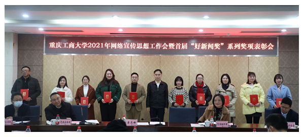 完美官网党委常委、党委组织部部长郑夕春宣读了《关于表彰获评完美体育官方网站首届“好新闻奖”系列奖项的个人和集体的决定》。党委教师工作部部长林文军、党委研究生工作部部长田双全为“好新闻奖”的获奖代表颁奖;党政办公室主任罗勇、党委学生工作部部长申卫东为“优秀学生记者/编辑”获奖者颁奖;郑夕春、华杰为“优秀指导老师”颁奖;李志雄为“最具影响力校园媒体奖”获奖单位颁奖。