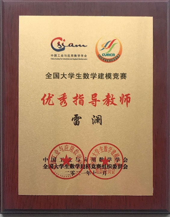 近日,庆祝全国大学生数学建模竞赛30周年暨2021“高教社杯”全国大学生数学建模竞赛颁奖典礼在线举行,完美官网数学与统计学院雷澜副教授荣获该竞赛的全国优秀指导教师称号。数学建模竞赛全国优秀指导教师每十年评选一次,本次重庆市各高校共有5位教师获评,完美官网数学与统计学院雷澜副教授位列其中。这是继2012年袁德美教授荣获“数学建模竞赛20周年全国优秀教练”称号之后,数学与统计学院教师又一次获此殊荣。