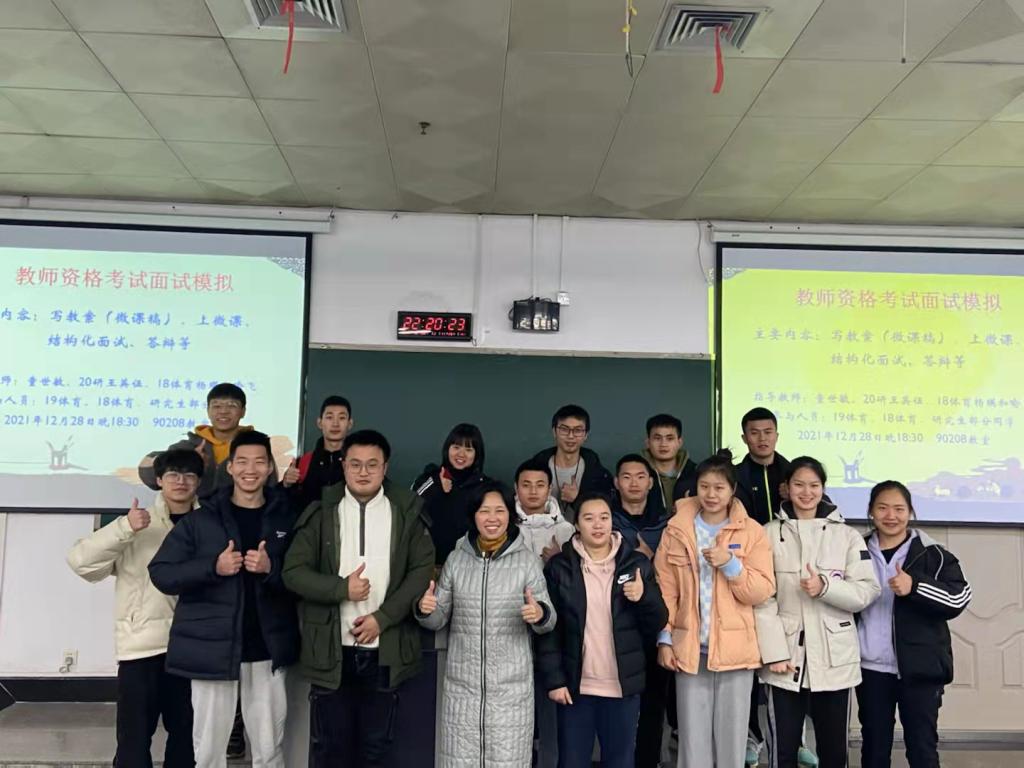 1月6日,获评2021年完美体育官方网站师德先进个人的体育学院童世敏教授为即将参加教师资格面试学生进行模拟训练与专场指导,同时邀请了多位研究生、本科生做经验交流分享。