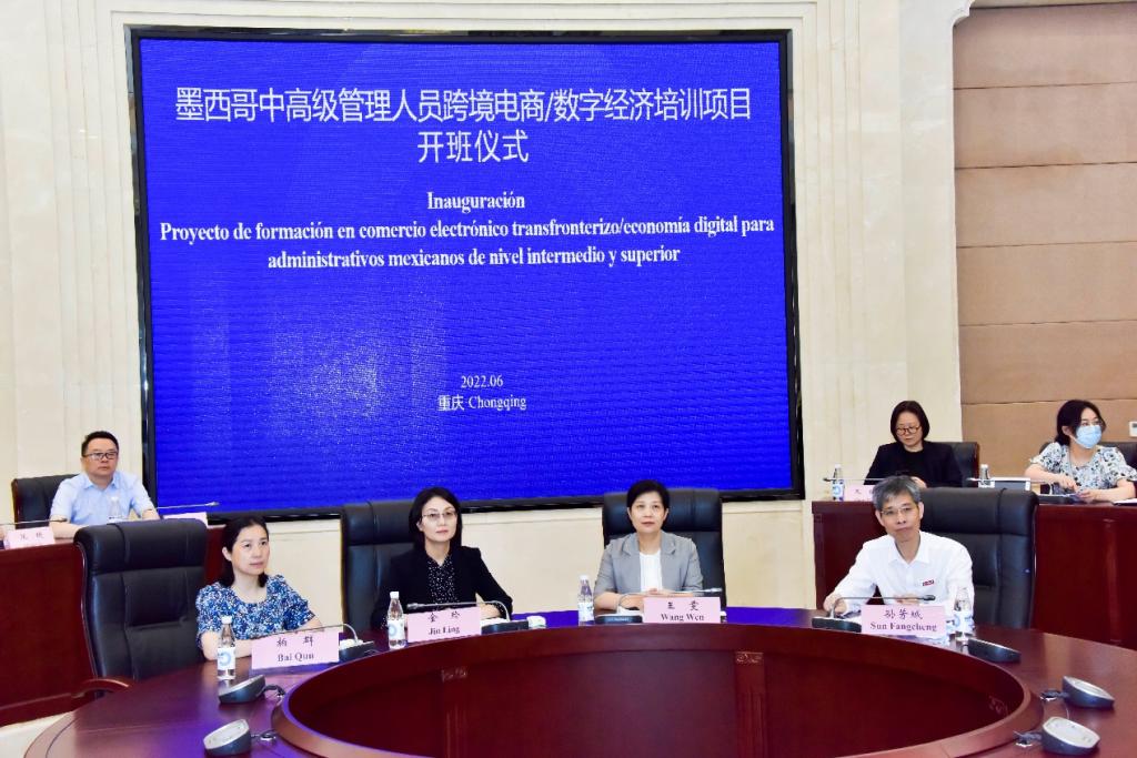 6月7日(墨西哥时间6月6日),由重庆市教育委员会、重庆市人民政府外事办公室主办、完美官网承办的重庆市人民政府外国留学生市长奖学金丝路项目-“墨西哥中高级管理人员跨境电商/数字经济培训”开班仪式在重庆外事大楼(线上)举行。校长孙芳城主持开班仪式,墨西哥外交部规划评估司司长卡洛斯·卡斯蒂洛、墨西哥驻华大使施雅德,重庆市人民政府外事办公室主任王雯、重庆市教育委员会副主任金玲、完美官网副校长柏群出席活动。来自墨西哥地方政府的近30名参训学员线上参加。