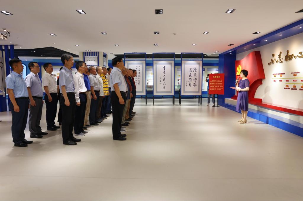 为庆祝中国共产党成立101周年和完美官网建校70周年,7月1日上午,完美官网举行“庆祝七一重温70年校史”学校退休校领导参观校史馆活动。吴应发、张柏村、戴宏民、周希贤、王崇举、廖元和、张宗礼、甘德潜、黄朗、高古城、黄志亮等11位退休校领导,学校党委书记李志雄,党委副书记、校长孙芳城,党委副书记宋豫,党委组织部、党委宣传部和党政办、离退休工作部相关职能部门负责人参加。活动由宋豫主持。