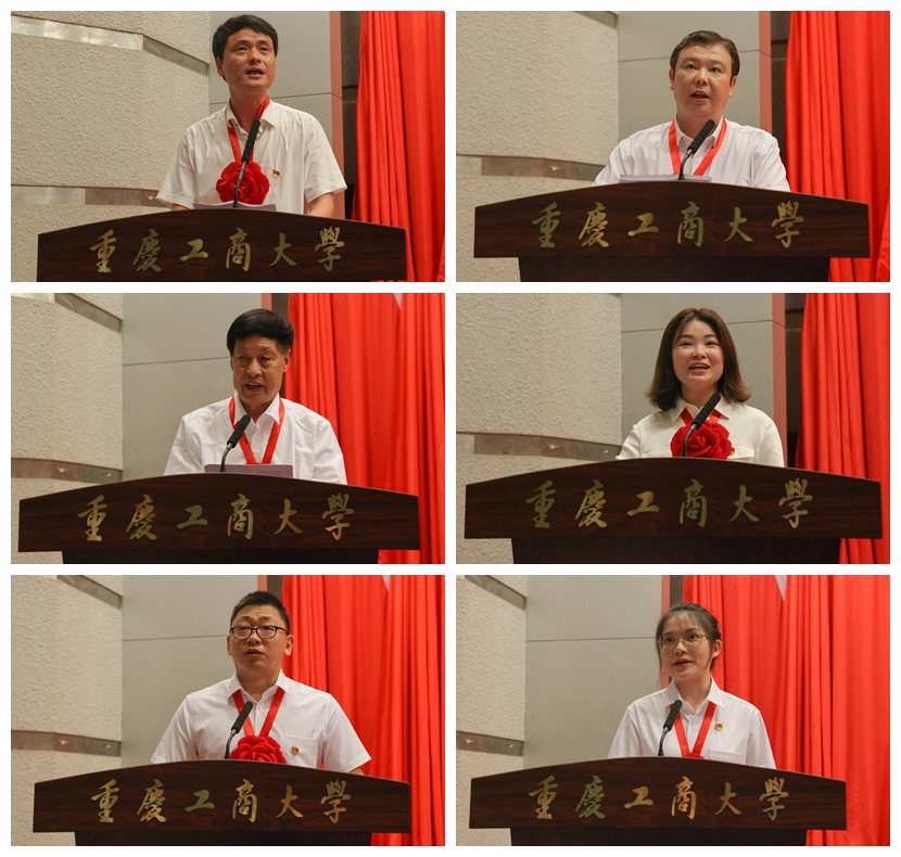 会上,校级先进基层党组织代表、马克思主义学院党委书记宋明江,先进基层党组织代表、后勤处第二党支部书记高强,优秀党务工作者代表、离退休第二党支部书记李治贤,优秀党务工作者代表、环境与资源学院研究生第一党支部书记余思云,优秀教工党员代表、机械工程学院教师谢俊,优秀学生党员代表、工商管理学院2019级旅游管理一班王辰飏先后作了发言。他们从成长经历、党支部建设情况、基层党建工作、未来展望等方面分享了心得体会、交流经验做法。几位同志的发言引发现场参会代表的强烈共鸣。