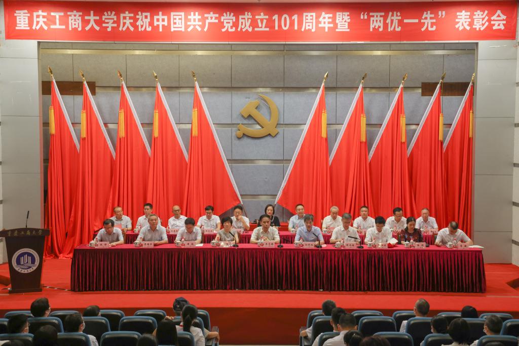 学校党委书记李志雄讲话。他首先代表学校党委,向全体党员同志致以节日的问候;向受到表彰的先进集体和优秀个人表示热烈祝贺;向“光荣在党50年”党员、30年以上党龄的党员同志致以崇高的敬意。李志雄谈到,百余年来,中国共产党始终坚守初心使命,团结带领人民创造了“当惊世界殊”的发展成就,书写了人类发展史上的伟大传奇,社会主义中国以更加雄伟的身姿屹立于世界东方,中华民族迎来了从站起来、富起来到强起来的伟大飞跃。李志雄指出,在伟大建党精神感召下,过去的一年全校各级党组织和广大党员在扎实开展党史学习教育、配合做好五届市委第八轮巡视工作并全力抓好巡视整改落实、加强基层党组织建设、科学谋划“十四五”发展规划、积极推动学校高质量内涵式发展等方面奋发图强,屡创佳绩。他从坚持对党忠诚一条心、坚持事业发展一盘棋、坚持从严治党一股劲儿三个方面对全校党员干部提出要求,号召大家不断书写让党中央放心、让人民满意、让社会点赞的重工商大答卷。李志雄指出,前进路上既有机遇也有挑战,他希望今天受到表彰的先进集体和优秀个人珍惜荣誉,再接再厉,再创佳绩。他希望全校各级党组织和广大党员以先进典型为榜样,坚定信念,锐意进取,以“撸起袖子加油干”的精神,以“闻鸡起舞正当时”的状态,以“责无旁贷舍我其谁”的担当,在各个领域带头攻坚,开好学校第四次党代会,为实现学校发展目标努力奋斗,以实际行动和优异成绩迎接党的二十大的胜利召开。