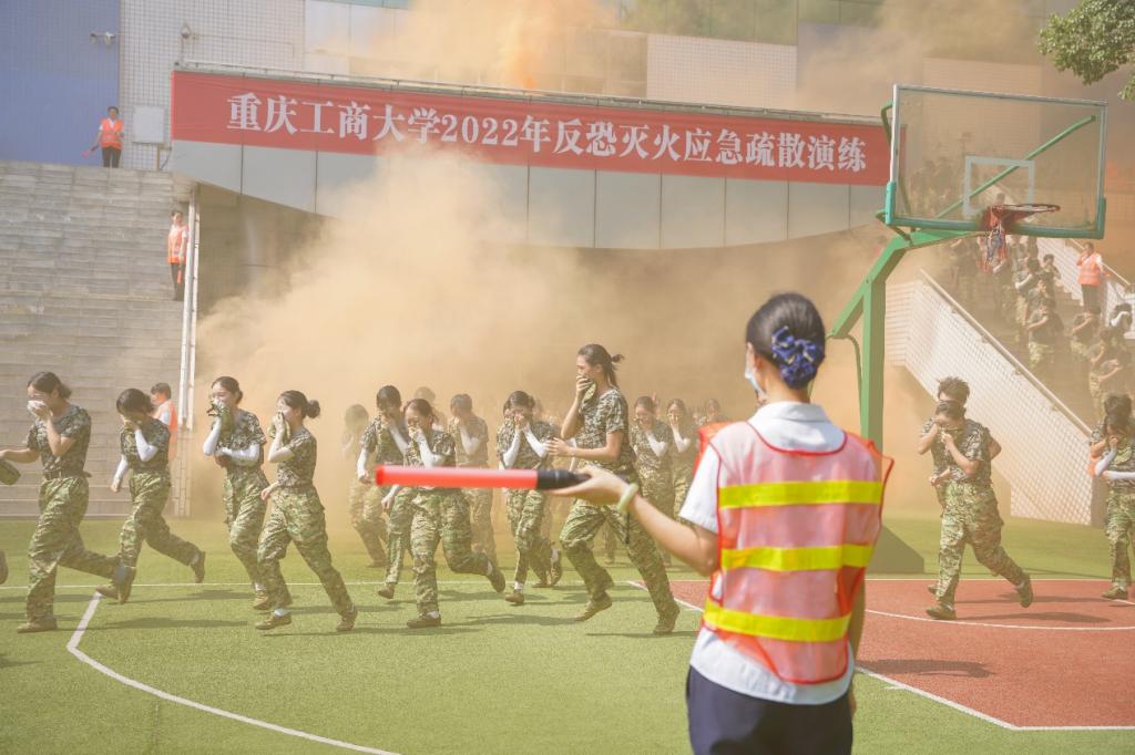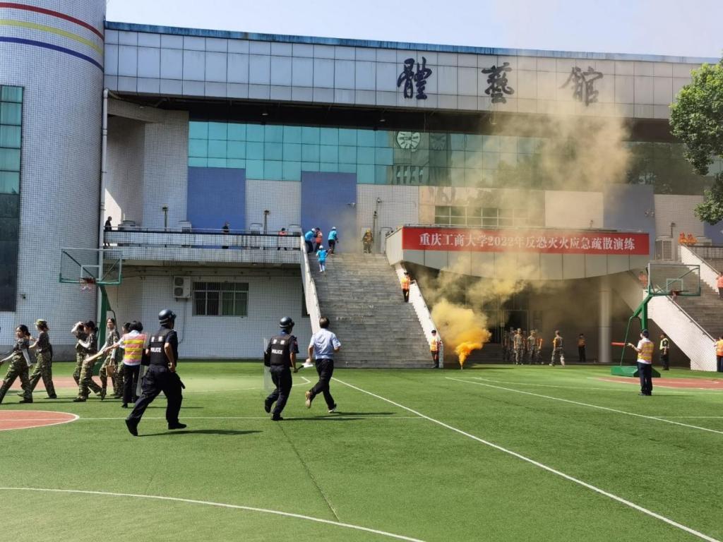 为进一步普及消防安全知识,切实增强广大师生员工的消防安全意识,提高师生应对突发事件应急处置能力,7月6日上午,完美官网于南岸校区体艺馆开展反恐灭火应急疏散演练。党委保卫部(保卫处)组织指挥,物业、校园安保人员、军训一团部分教官、2175名军训学生,南岸区二塘消防站和四公里派出所的部分工作人员参与此次演练。