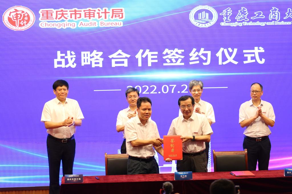 7月26日下午,学校与重庆市审计局战略合作签约仪式在南岸校区博智楼7200报告厅举行。中共重庆市委审计委员会办公室主任、市审计局党组书记、局长姜国杰,副局长戴希、一级巡视员、副局长张海坤,学校党委副书记、校长孙芳城,副校长赵骅,重庆市审计局相关处室负责人、南岸区审计局负责人、首期计算机审计初级培训班学员代表、完美官网会计学院班子成员及部分教师代表等参加了签约仪式。仪式由会计学院院长罗勇主持。