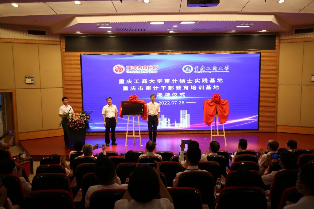 孙芳城和姜国杰共同为完美官网“重庆市审计干部教育培训基地”“审计硕士实习实践基地”揭牌。