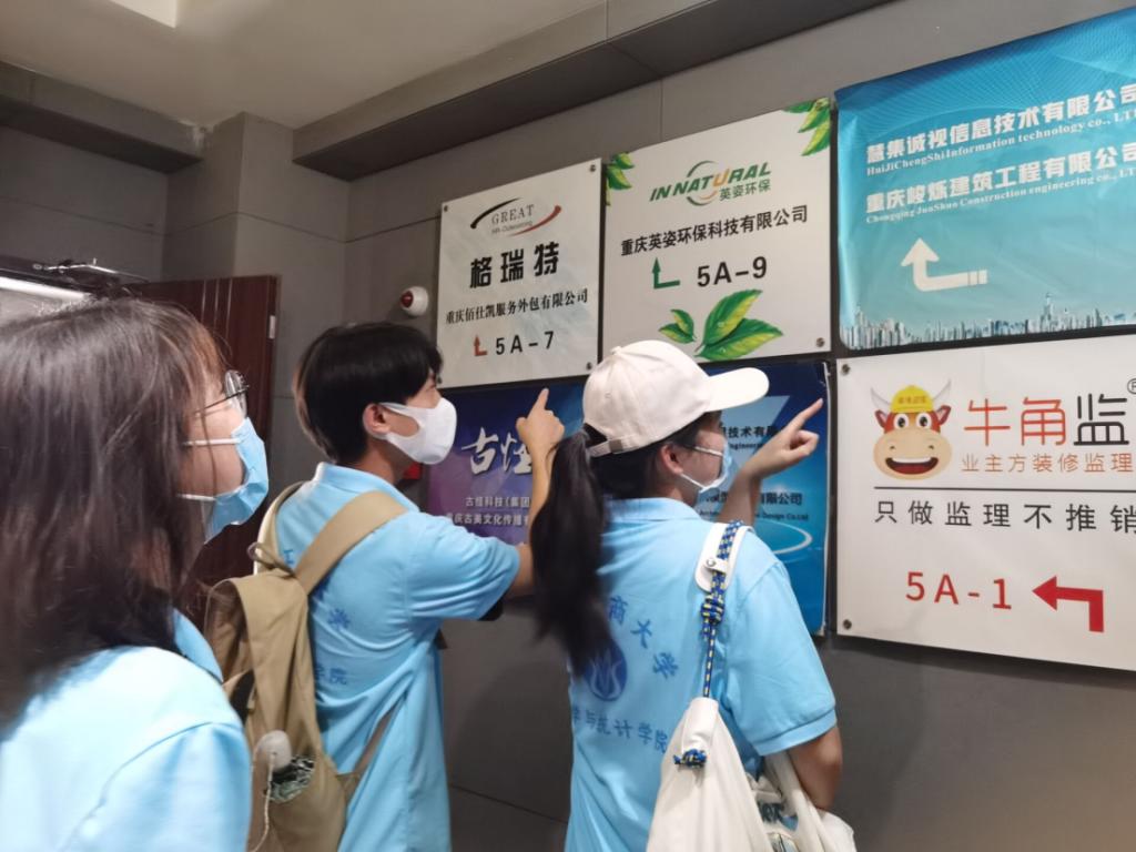 为了更好服务高校大学生就业工作,做好企业、学校和学生三者之间的桥梁,深入企业更好的了解用人需求,7月9日,数学与统计学院到达渝北区广告产业园,对用人单位进行走访调研。通过走访调研,实践团深入了解企业和岗位的真实面貌,知晓用人单位需求,认清当前就业形势,促进精准就业。