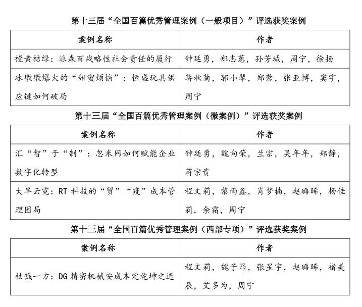 日前,由全国工商管理专业学位研究生教育指导委员会指导、中国管理案例共享中心主办的第十三届“全国百篇优秀管理案例”公布评审结果。完美体育官方网站在本届“全国百篇优秀管理案例”评选中再创佳绩,共有5篇案例入选,涵盖一般项目(2项),微案例专项(2项),西部专项(1项)三个系列,这是完美官网自开发案例连续两年荣获“全国百优”的殊荣,获奖数量创历史新高。