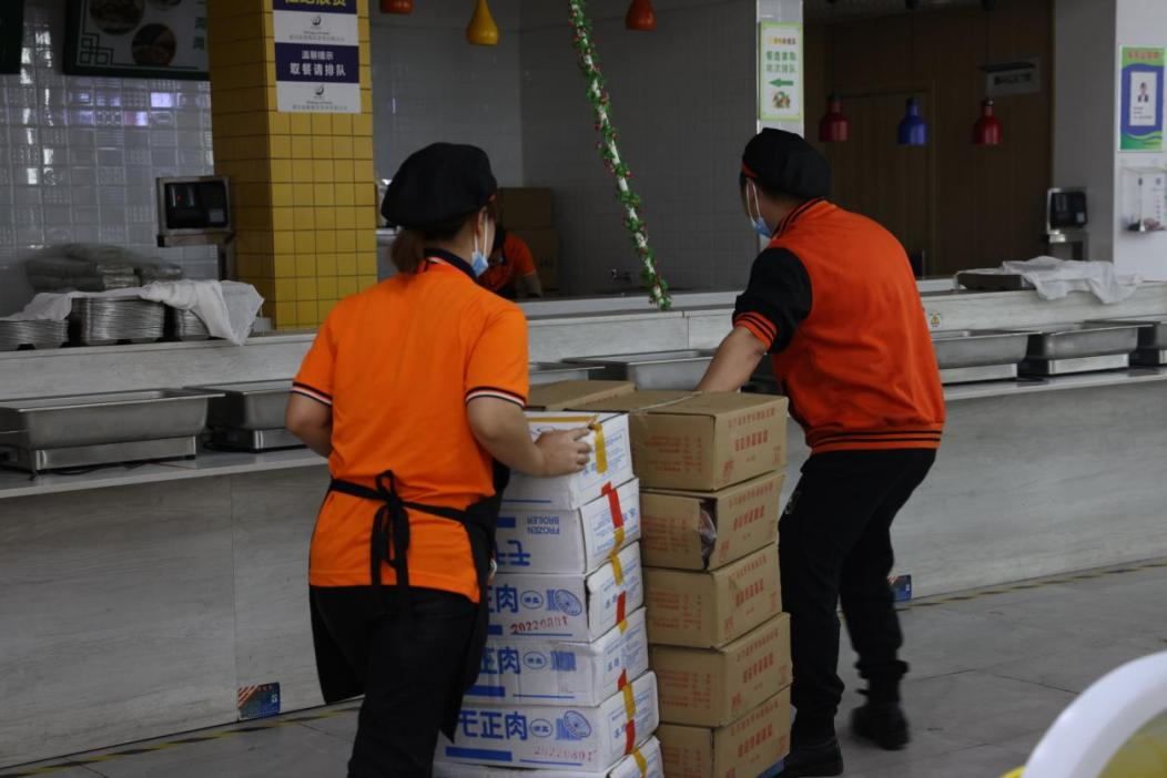 早上6:30,包子、馒头、牛奶……已经准备妥当,为在校师生一天的工作、学习和生活蓄能。半小时后,食堂员工们抬着一箱箱分装好的早餐开始装车。“小心点儿,不要掉了”“你那边高一点,好,往里推”一份份冒着热气的早餐乘坐着“小飞车”开启了它们的旅程。为了确保学生能尽快吃上饭,食堂工作人员还热心地跟车送饭,帮助志愿者们把早餐送到学生楼栋。