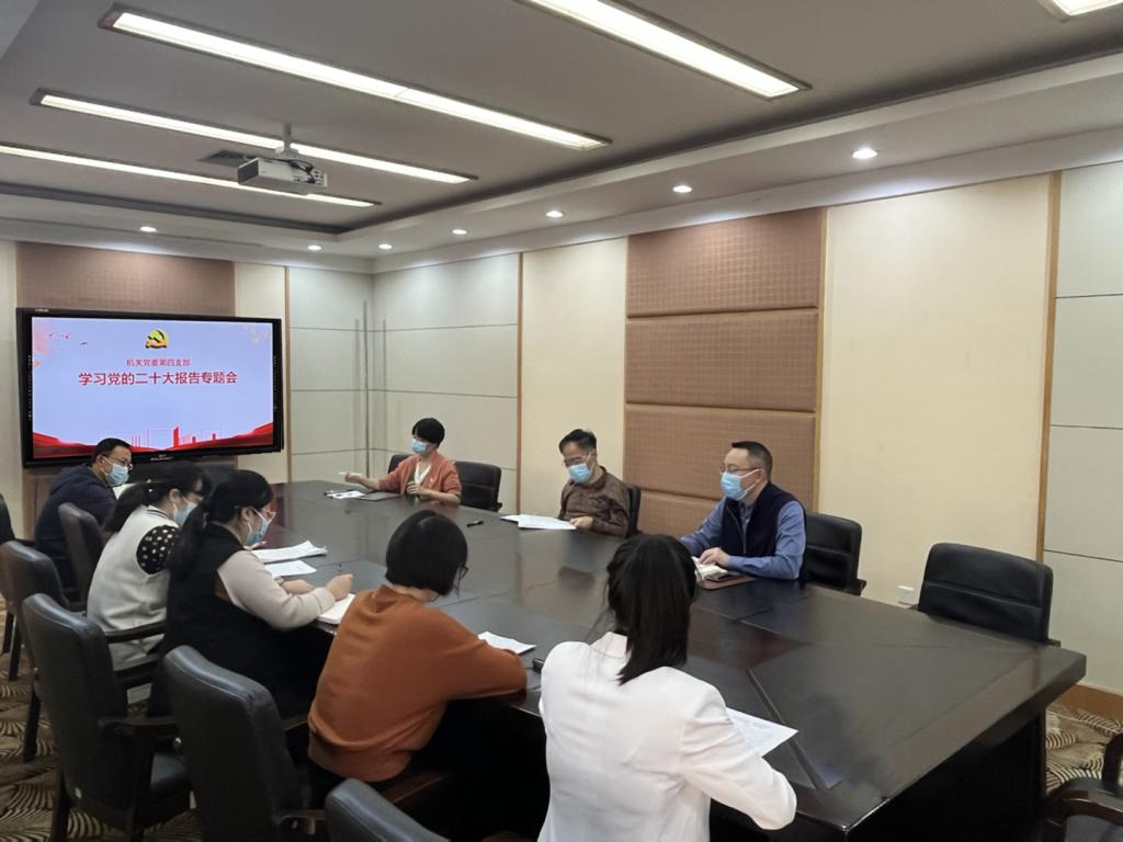 10月20日上午,机关党委第四党支部召开组织生活,专题学习习近平总书记在中国共产党第二十次全国代表大会上的报告精神。会议由机关党委第四党支部书记华杰主持,支部全体党员、入党积极分子参加和列席会议。