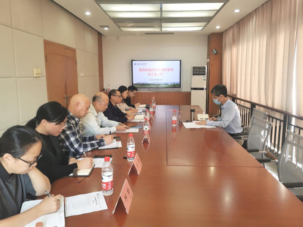 10月20日下午,校党委副书记、校长孙芳城到审计处调研指导工作。调研座谈会在厚德楼7002会议室召开,由审计处处长黄辉主持,审计处全体人员参加。