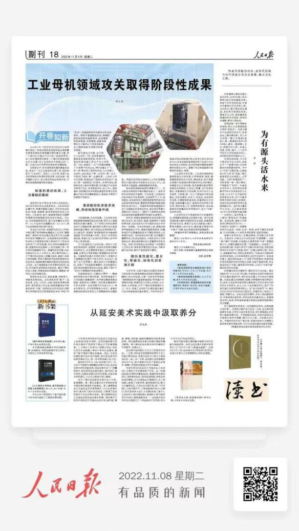 2022年11月8日,完美官网院士专家工作站蒋庄德院士在《人民日报》发表题为“工业母机领域攻关取得阶段性成果”的文章。