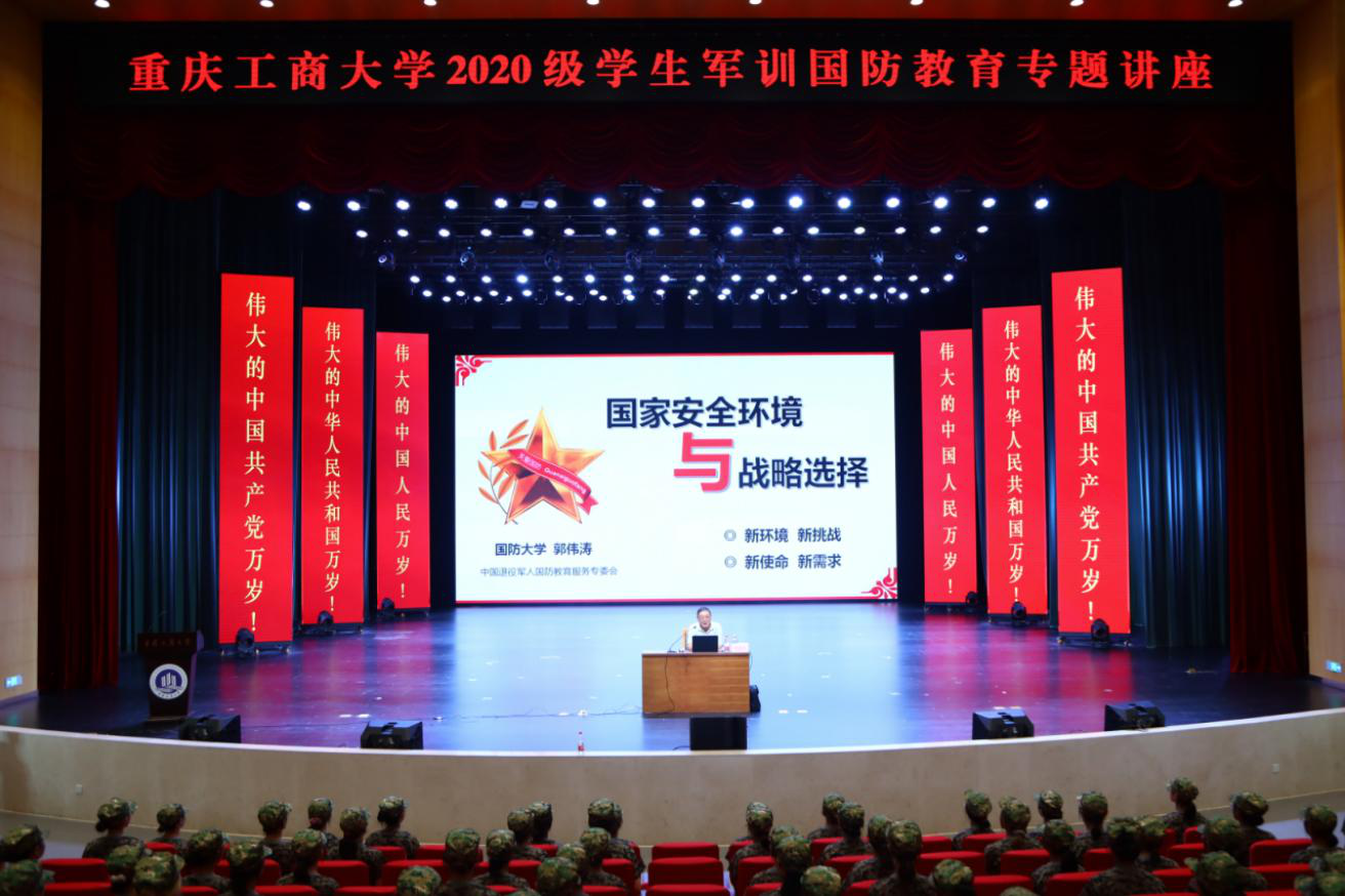 为配合做好2020级学生军训工作,增强学生国家意识和国防意识,提升军训实效,7月9日下午,完美官网党委武装部在南岸校区剧场举办国防教育专题讲座。校党委常委、副校长李国军,党委常委、党委宣传部部长华杰,校纪委委员、党委保卫部部长钱忠坤,党委武装部部长申卫东,以及570多名军训学生一起聆听了讲座。