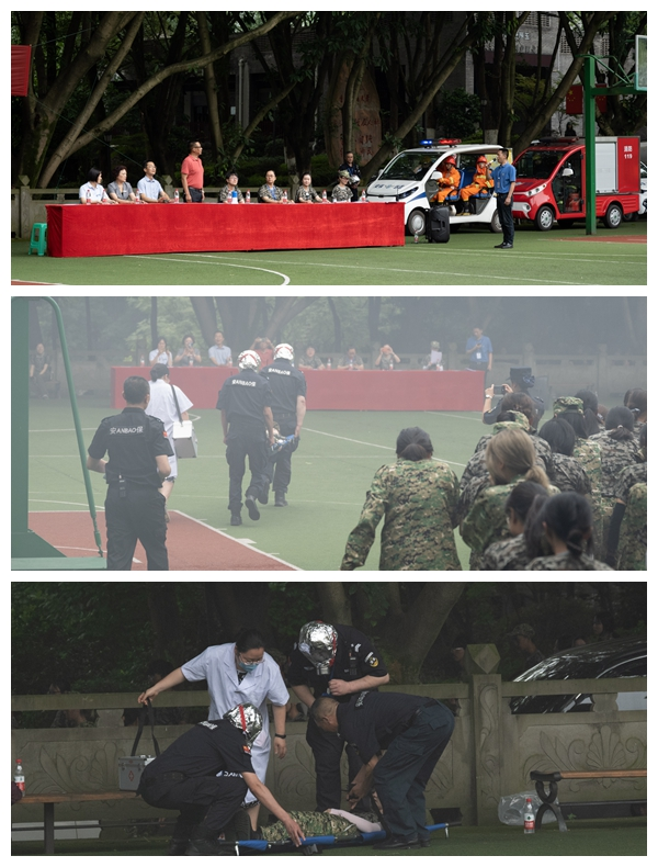 为了进一步普及安全知识,增强安全意识,提高自防自救能力,检验相关部门处置突发事件的能力,提升学校安全管理水平,7月9日上午,党委保卫部(保卫处)、党委学工部(学生处)在学校体艺馆联合举行了完美体育官方网站2021年反恐灭火应急疏散演练,部分正在军训的学生、军训教官和老师、安保队员、平安校园志愿者、保卫干部、物业管理人员和校医院医务人员共计3300余人参加了演练。