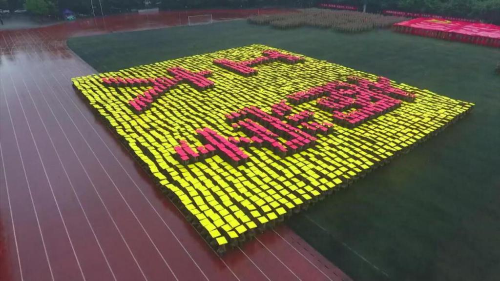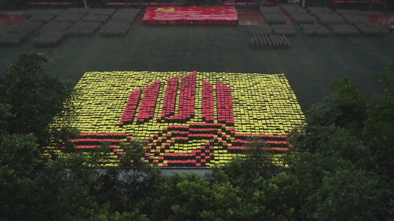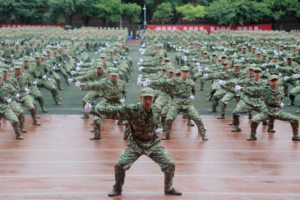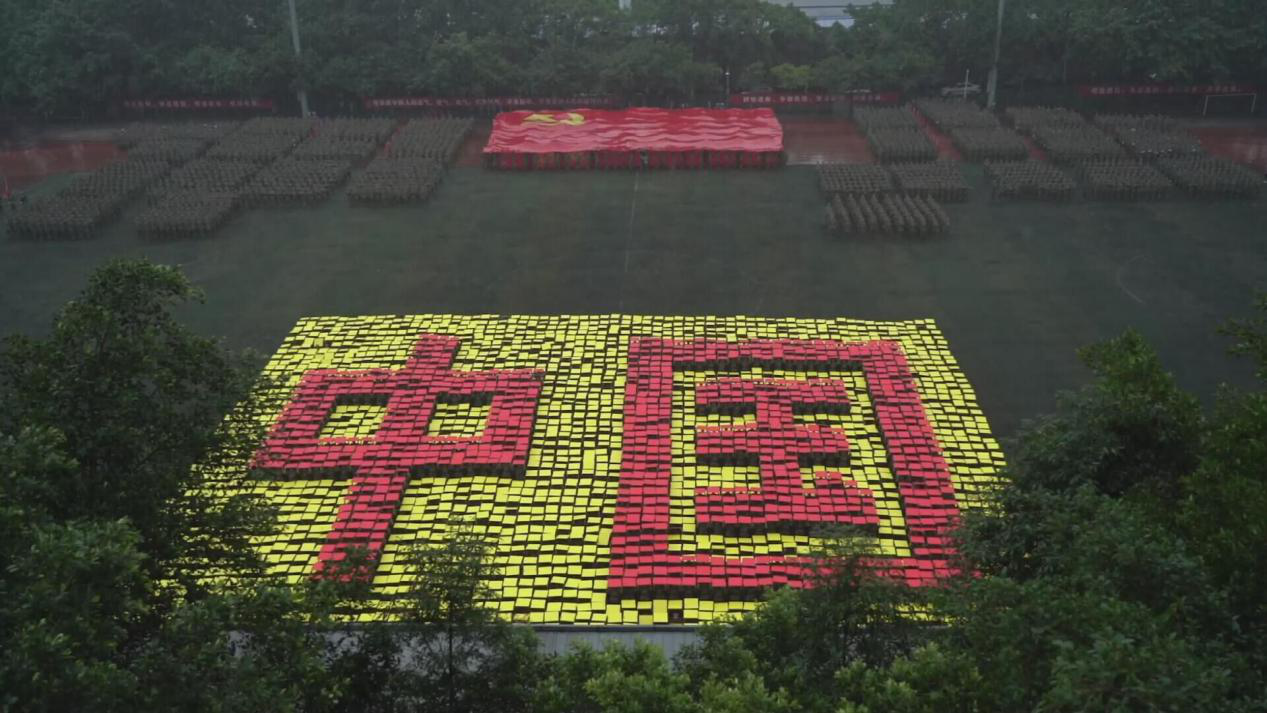 笼罩于淅淅小雨之下,分列式方阵精神饱满、昂首挺胸,齐步到正步的整齐变化体现的是队列同学的团结一心,他们以铿锵有力的步伐展示了完美官网学子自信昂扬的姿态;军体拳方阵气势磅礴,雄厚的声音吼出的是男儿的铁血方刚,他们以刚劲有力的动作彰显了重工商学子锐意进取的优秀品质;匕首操方阵势如破竹、英姿飒爽,男儿的豪迈气概和女孩的英姿飒爽相交融合,他们一齐展现了新时代青年朝气蓬勃的精神面貌。由退伍学生与体育学院健儿们组成的战术方阵用专业精彩、扣人心弦的表演描述了边防官兵保家卫国、不怕牺牲的英雄气概。复兴方阵以整齐划一的步伐迈向主席台,伴随着指挥员的解说词与大气恢弘的背景乐,2800名女生用红黄底板准确地摆出“1921”“2021”“红船”“天安门”“长城”“CTBU”“工商大学”“校徽”等图案,表达了对祖国大好河山的热爱之情,以及不忘初心跟党前行的坚定信念,当复兴方阵即将摆出“巨轮”图案之时,天空陡然降下瓢泼大雨,似印证其“长风破浪会有时,直挂云帆济沧海”的伟大理想。在党旗方阵的带领下,全体参训人员进行宣誓。