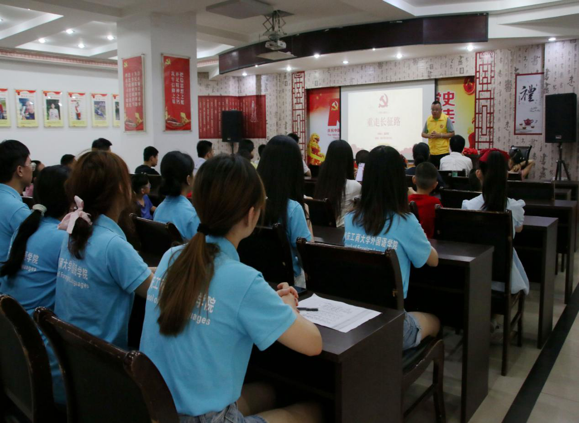 为引导广大社区居民朋友们学党史、知党事、感党恩、听党话、跟党走,7月15日上午,重庆市渝中区社区居民和完美体育官方网站外国语学院2021暑期“三下乡”社会实践团一起上了一堂关于“红军长征”的特色党课,重庆市团校校长涂凯一行人莅临现场听取党课。重庆市渝中区老街公益文化发展中心成员童思斯从走长征路的前提、红军为什么能够获得长征的胜利以及红军怎样在长征途中获得老百姓的支持这三方面为同学们带来一堂别开生面的特色党课。同学们认真听讲,收获颇丰。