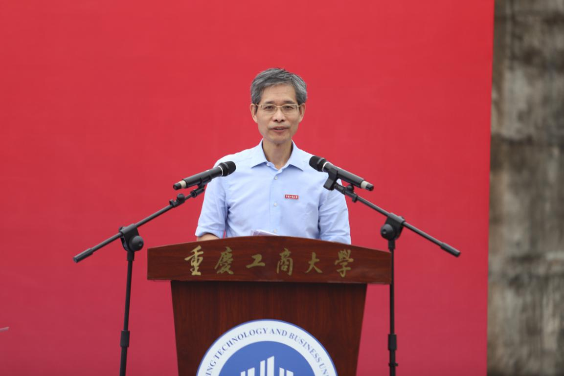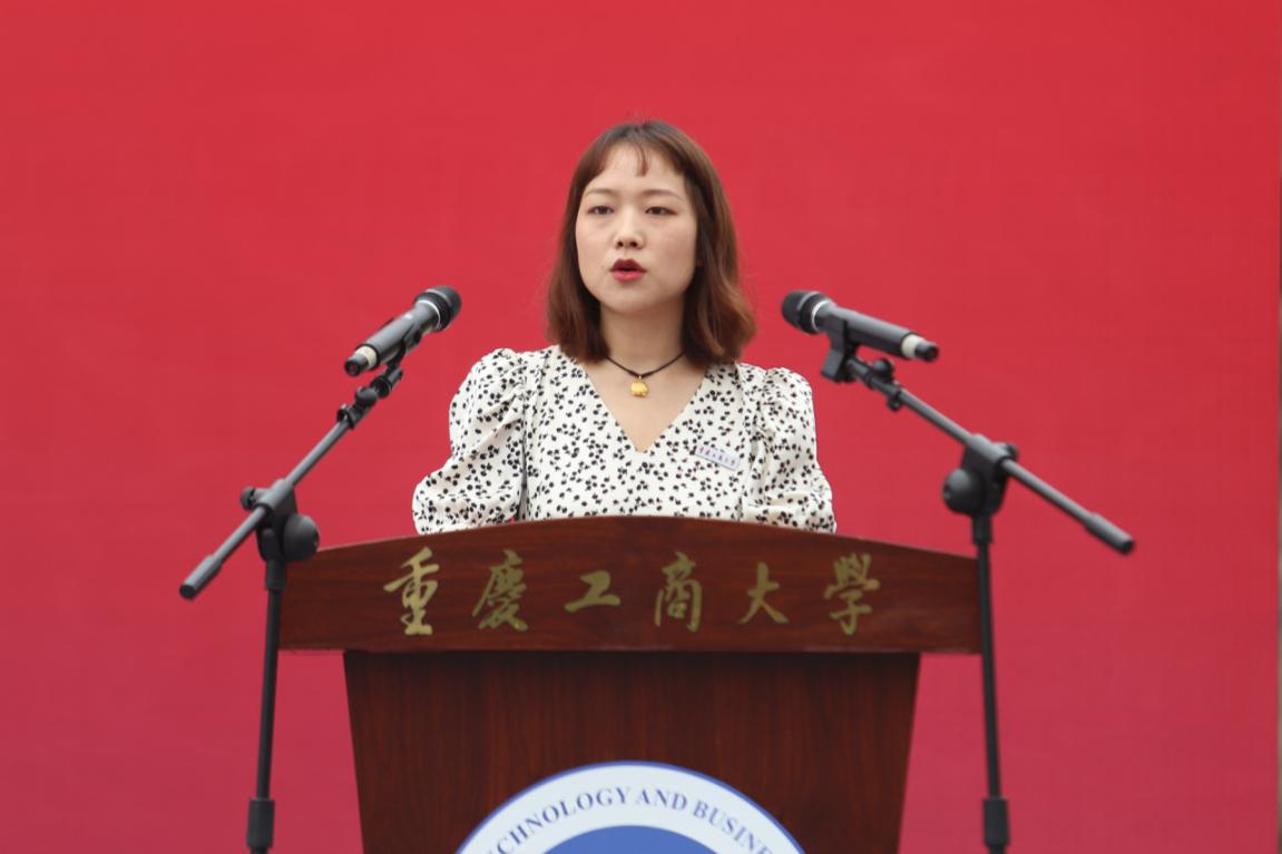 江北校区2021级本科新生代表、通识学院金融学类专业李静同学,南岸校区2021级本科新生代表、国际商学院国际贸易专业杨钦钦同学和研究生新生代表、2021级产业经济学博士研究生唐菁同学先后发言。他们感谢学校的关怀、学长学姐的热心答疑、辅导员的恳切指导以及同学们的互帮互助,这让他们体会到了CTBU大家庭的温暖。他们表示,在学校即将迎来70周年校庆之际,作为新一代“重工商大人”,他们将传承“含弘自强、经邦济民”的重工商大精神,做到知行合一,学以致用;在中国共产党成立100周年之际,他们将踏上奋进新征程,放飞人生新梦想;无惧挑战,以青春之我服务青春之国家;他们将以校为荣,以我荣校,脚踏实地躬行践履;他们将扛起理想风帆,勇立时代潮头,谱写青春华章。