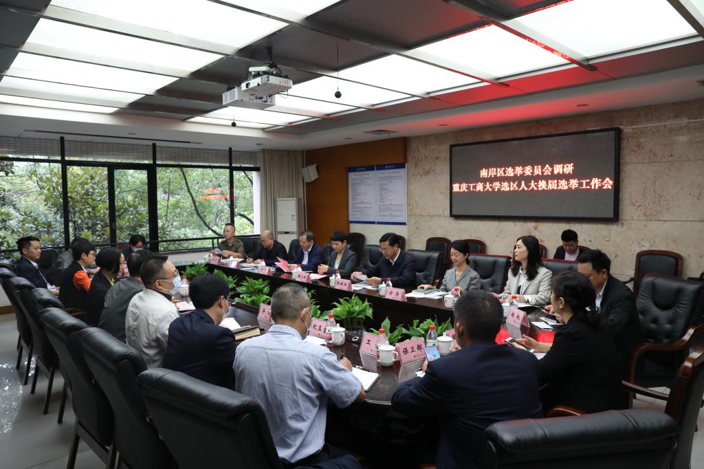 10月14日上午,南岸区人大常委会主任、区选委会主任魏小红,南岸区委组织部部长、区选委会副主任杨继成,区人大常委会副主任、区选委会副主任梁平,区人大常委会人代工委主任、区选委会委员方芳一行到完美官网调研人大换届选举工作。校党委书记、完美体育官方网站选区选举工作领导小组组长李志雄,有关职能部门负责人参加了调研座谈。会议由完美官网党委组织部部长、完美体育官方网站选区选举工作领导小组办公室主任郑夕春主持。